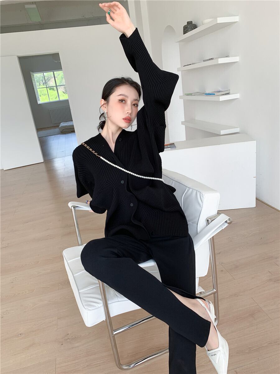 ウェーブのようなドレープがハイデザインのカーディガン