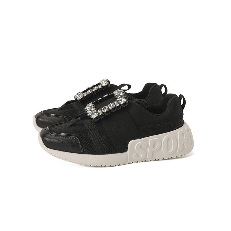 ビジュー付きデザインスニーカー スポーティ×ラグジュアリーMIX レディース スクエアビジュー厚底スニーカー クリスタルビジュースニーカー レディースシューズ レディーススニーカー スニーカー 厚底シューズ レディーススニーカー ビジュー クリスタルバックルスニーカー 厚底 脚長 ビジュー パンプス 厚底スニーカー C719