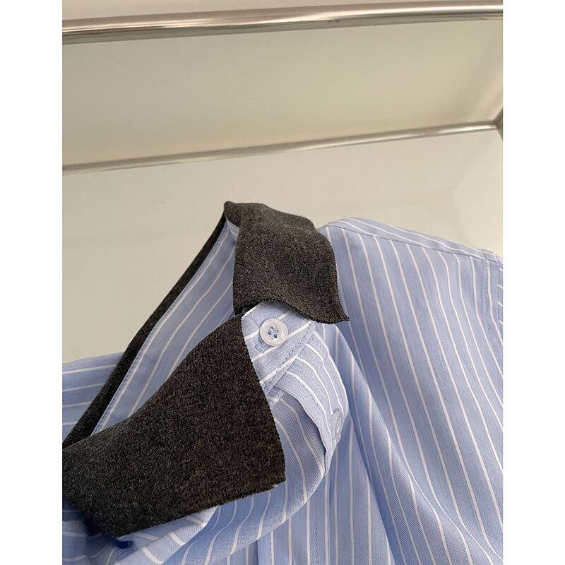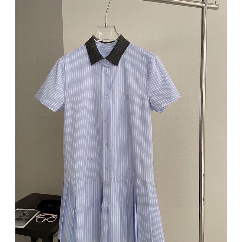 ストライプシャツワンピース レディース ストライプ フレア裾 半袖 かわいい ミニ丈 襟付き 大人カジュアル 春夏コーデ 通学 旅行 お出かけ 大人可愛い シャツワンピース ストライプ柄 フレア ミニ丈 半袖 バイカラー襟 きちんと感 体型カバー デート C717