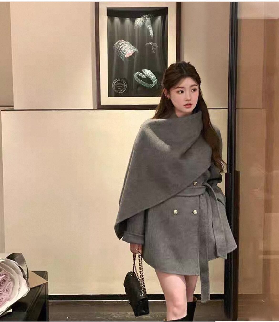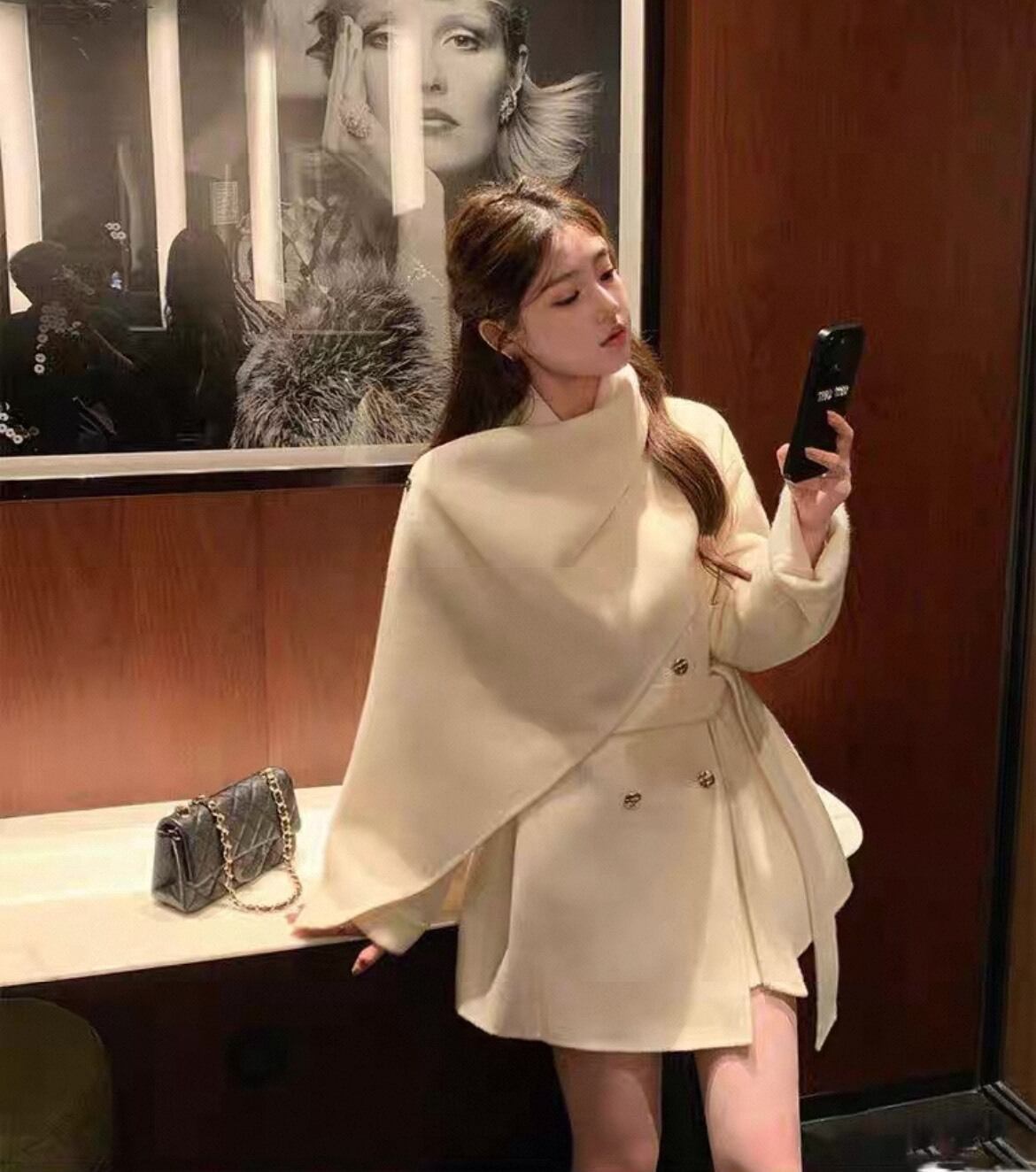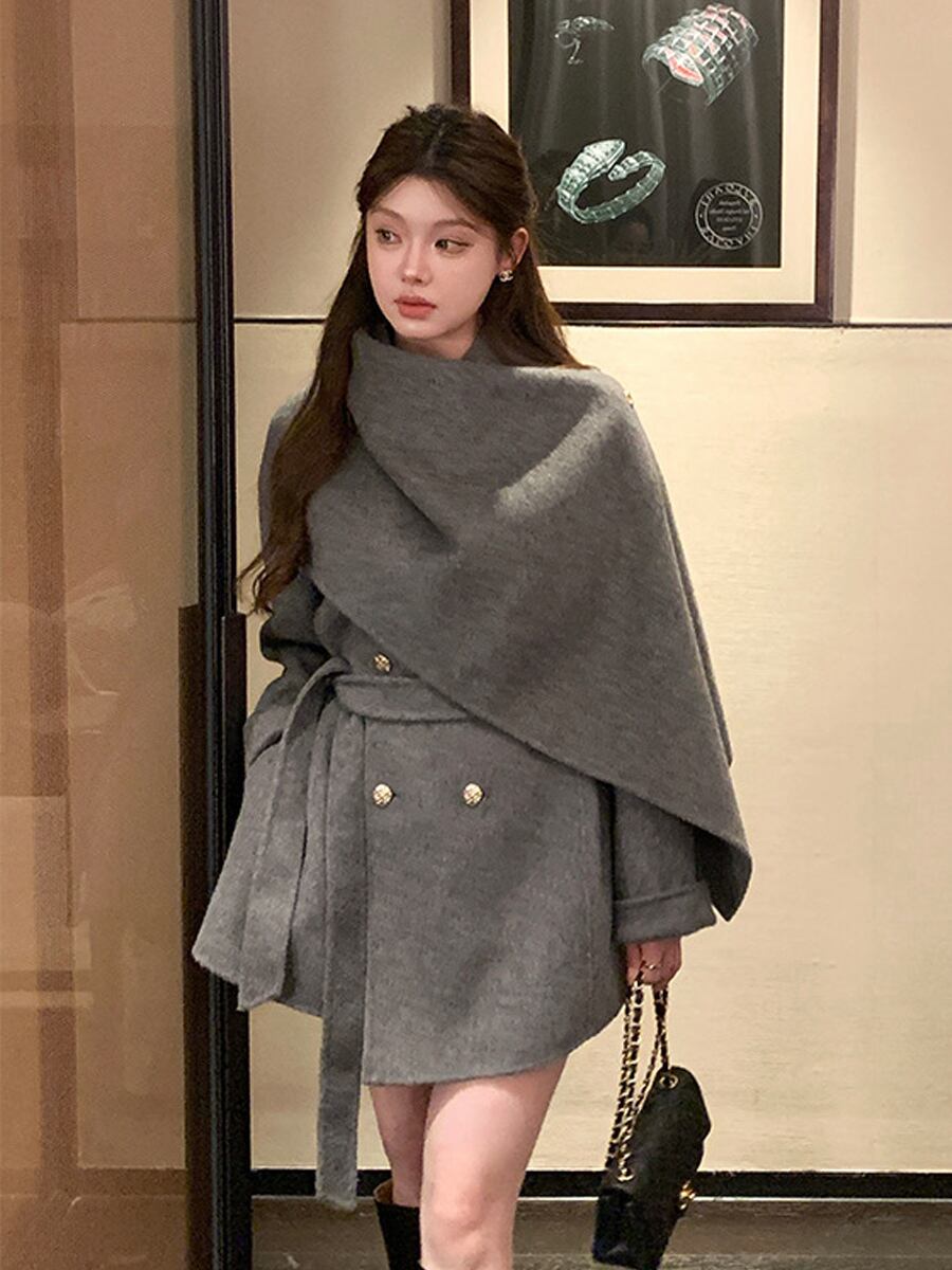 ケープコート レディース 秋冬 アウター ショート丈 ジャケット 体型カバー 上品 エレガント おしゃれ ウール風 ベルト付き ダブルボタン コーディガン 通勤 デート 黒 白 グレー 赤 20代 30代 40代 高見えコーデ フェミニンアウター クラシカルコート 上品ファッション おしゃれ女子コーデ 秋冬 アウター 体型カバー C550