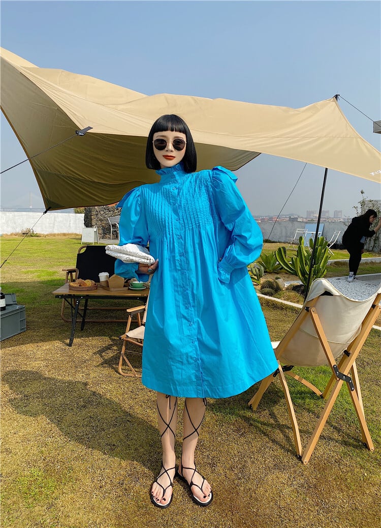 顔まわりを華やかに魅せるフリルとタックデザインが印象的な、ロマンティックなシャツワンピースが登場。