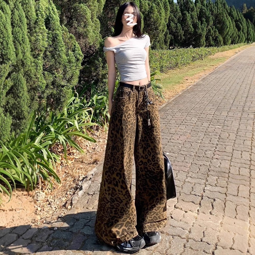 レオパードワイドパンツ レディース レオパード柄 ヒョウ柄 ストリート系 原宿系 美脚 着痩せ カジュアル ボトムス トレンドファッション 春 夏 秋 冬 C514