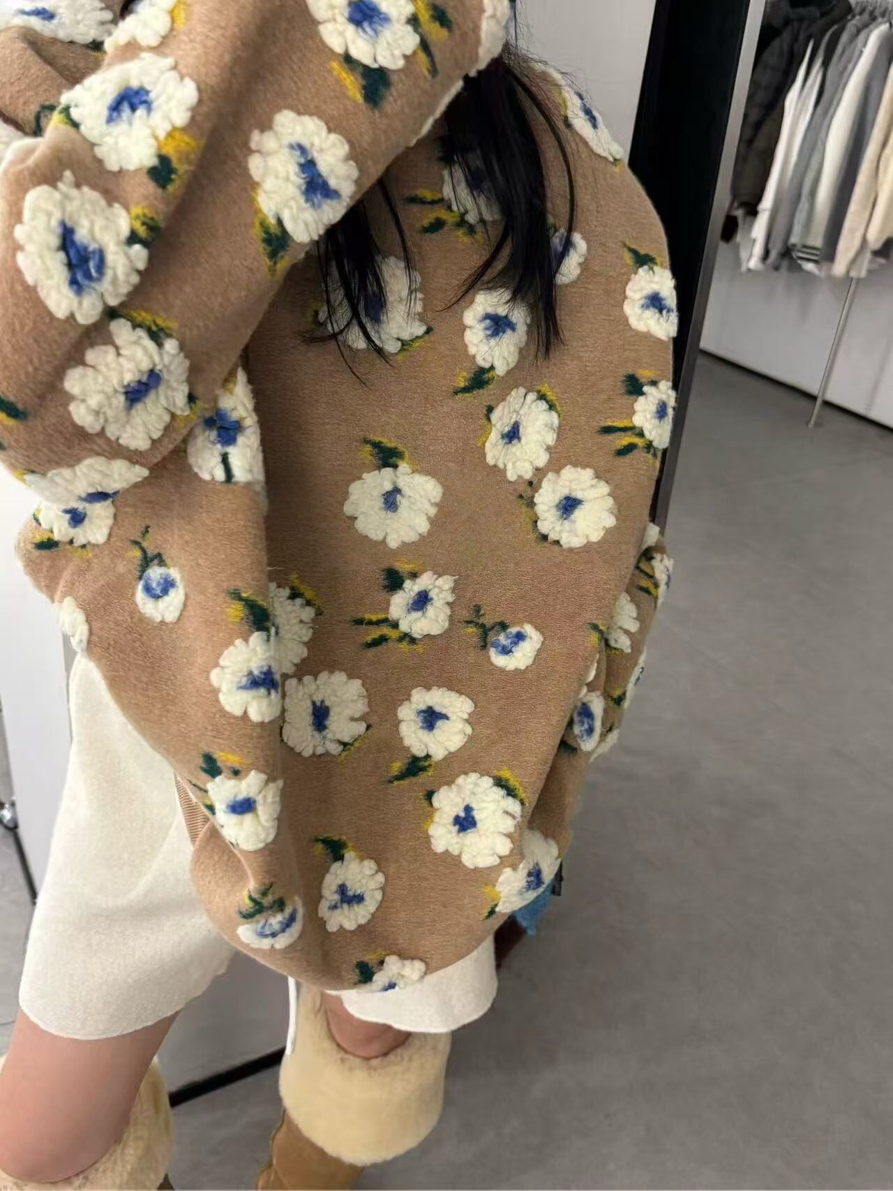 立体フラワー刺繍ニットトップス レトロ ガーリー ニット スウェット ゆったりシルエット 可愛い 秋冬コーデ レディース 花柄 刺繍 長袖 カジュアル C423