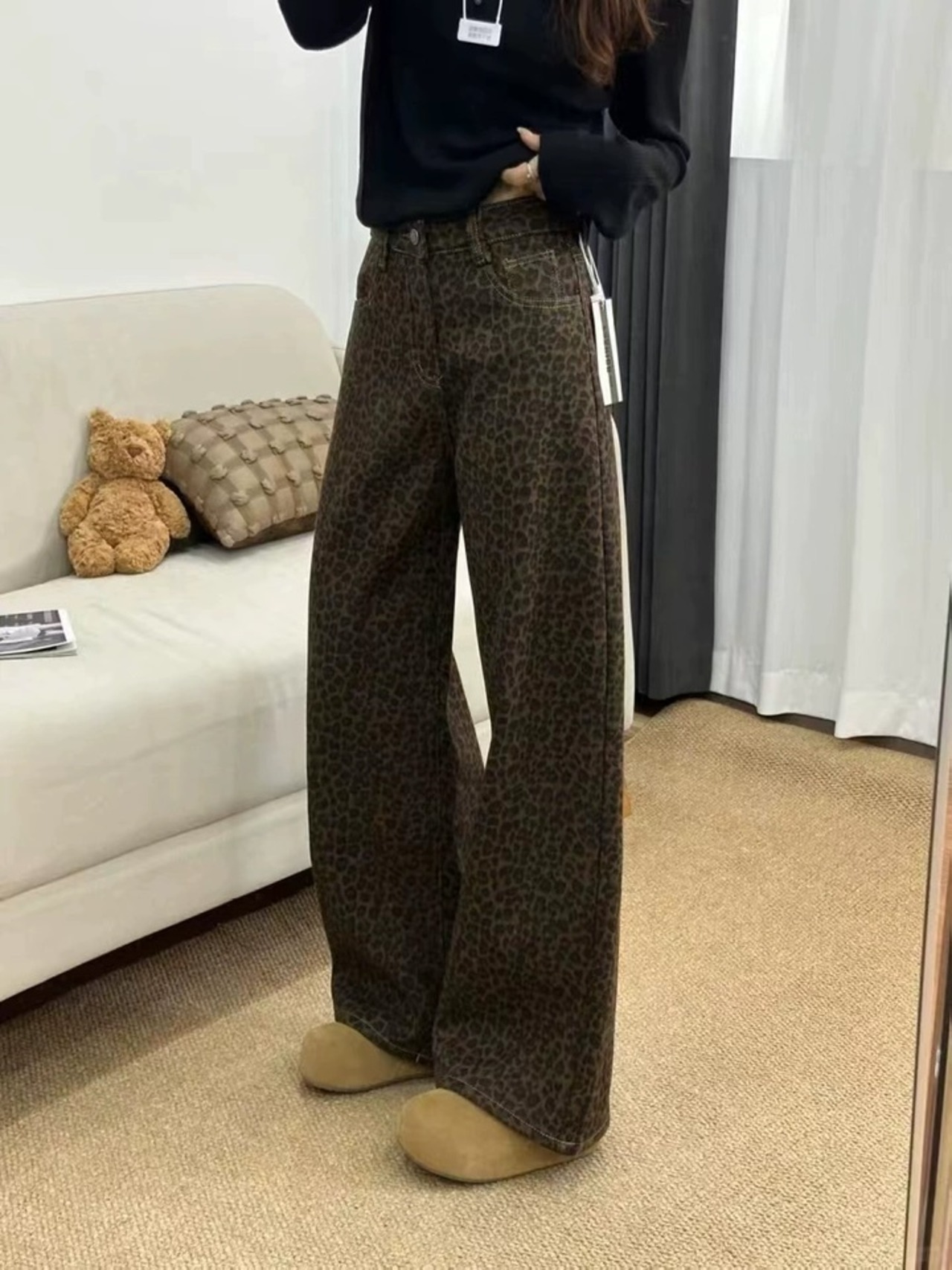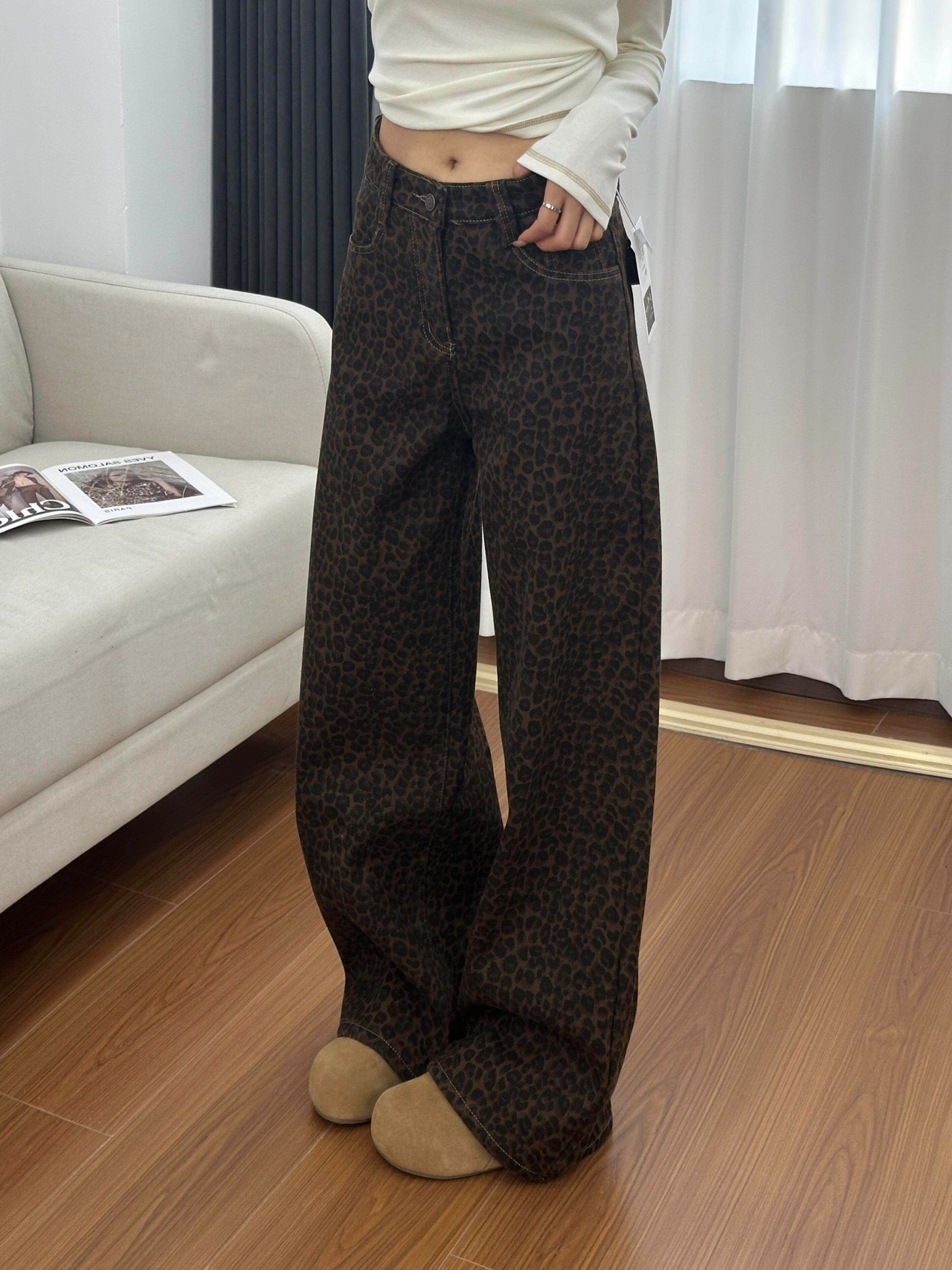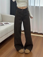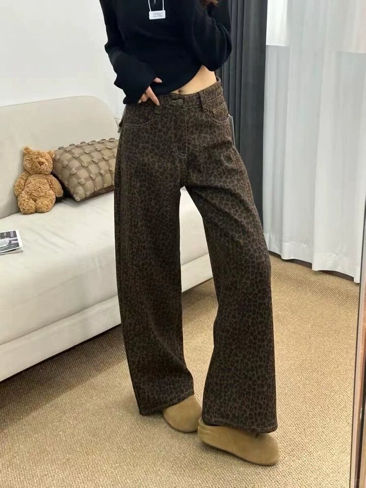 レオパード柄ワイドパンツ 裏起毛 レディース 秋冬 あったか ゆったり 秋冬パンツ 裏起毛パンツ レオパード柄 ヒョウ柄 韓国ファッション ワイドパンツ デニム風 / レディース ゆったりパンツ 美脚 体型カバー 防寒 あったかパンツ カジュアル きれいめ 高見え 旅行コーデ C376