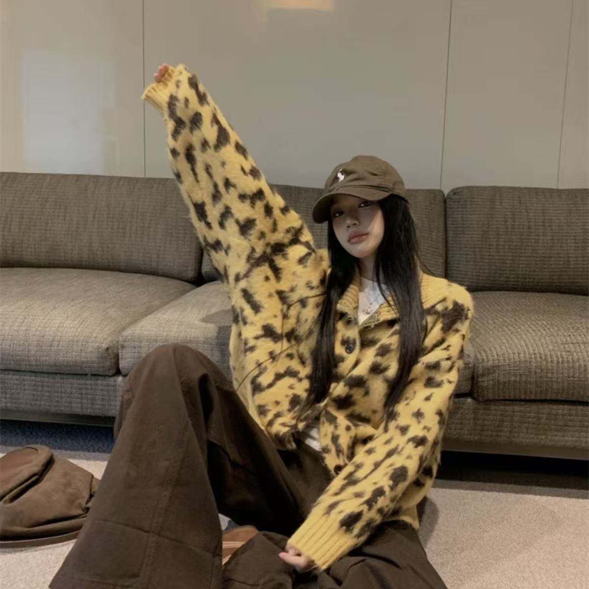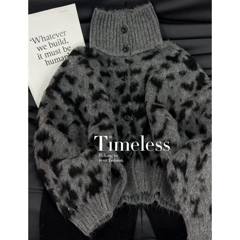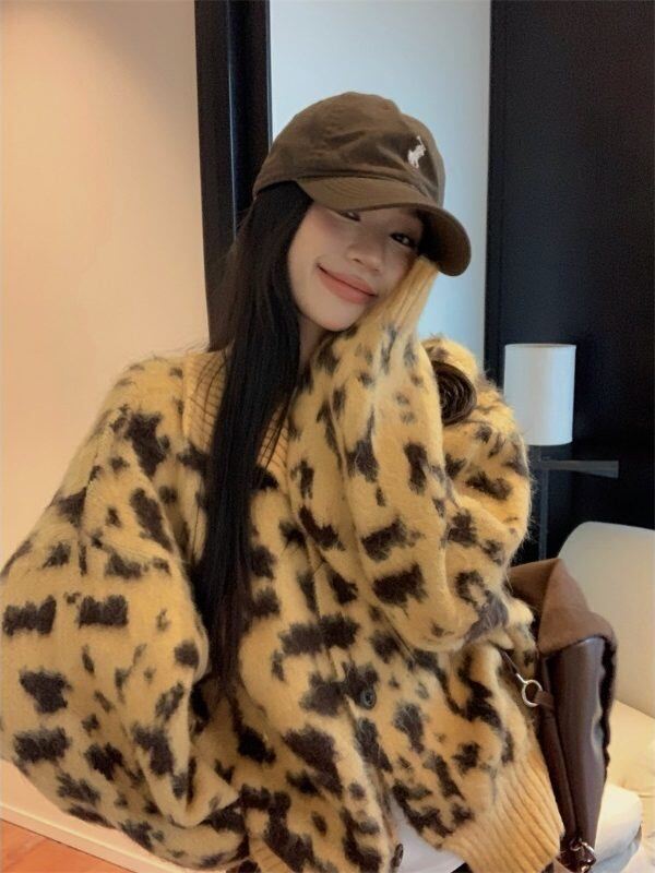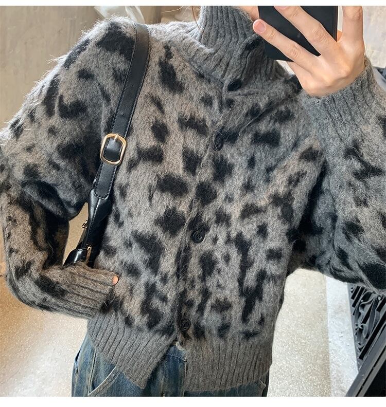 レオパード柄が目を惹く、存在感抜群のニットカーディガンが登場。