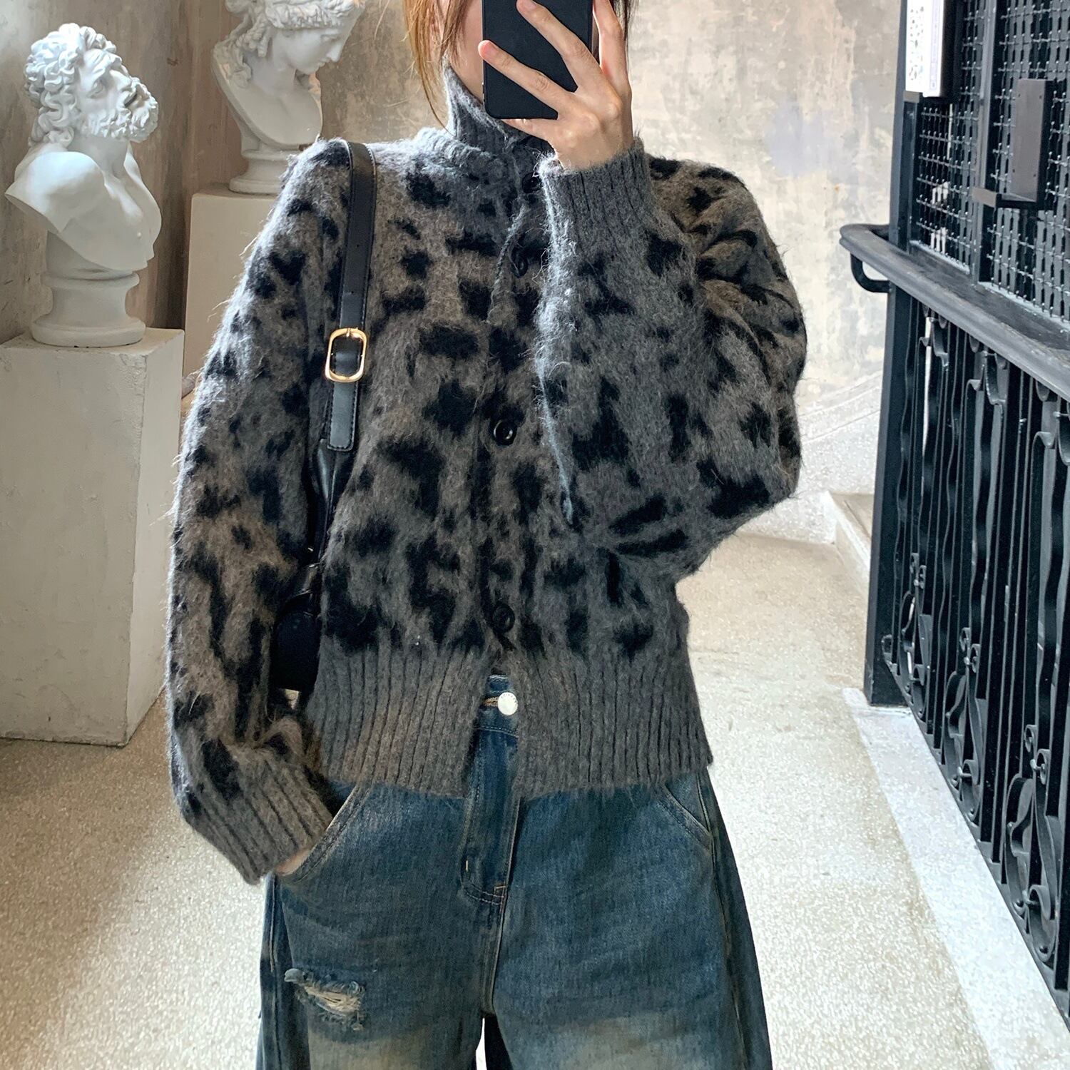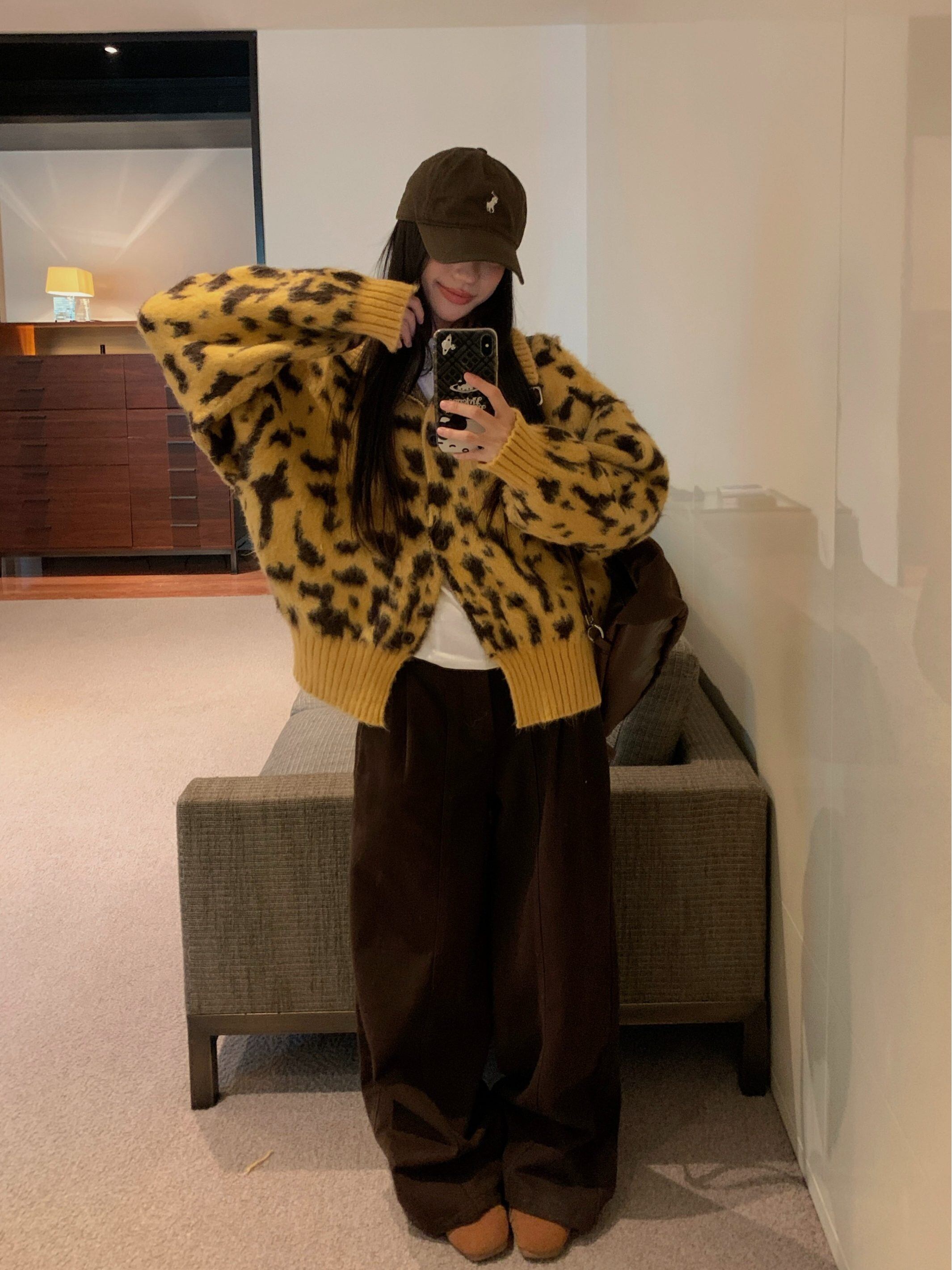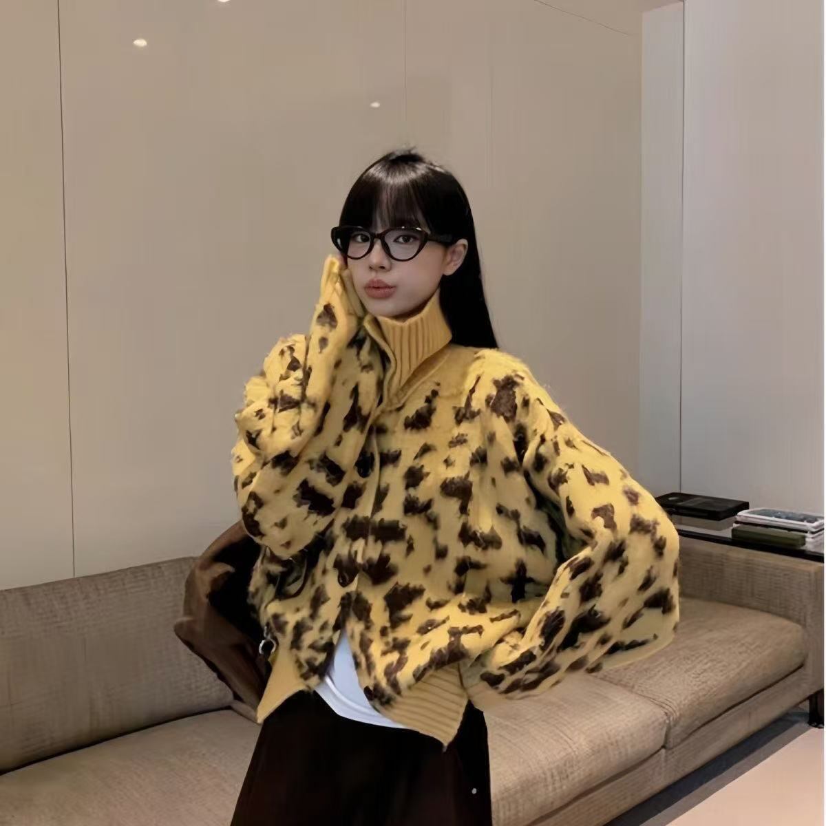 レオパード柄が目を惹く、存在感抜群のニットカーディガンが登場。