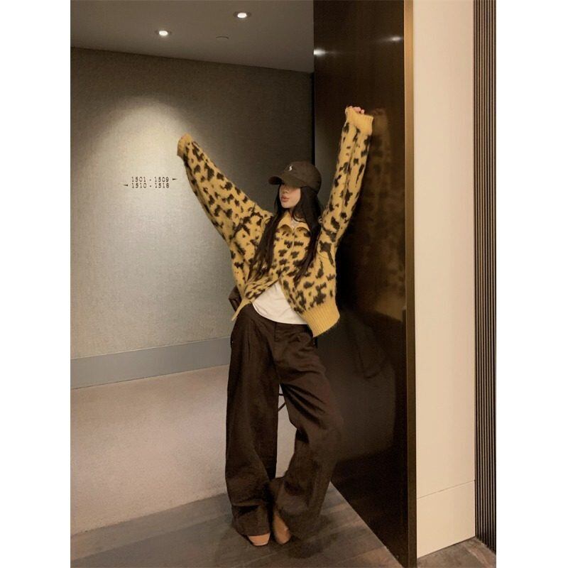 レオパード柄 モヘア風ニットカーディガン ふわもこ レオパード柄カーディガン ニットカーディガン 春秋冬 可愛い レディース オーバーサイズ 羽織り トップス カーディガン ふわもこカーディガン C393