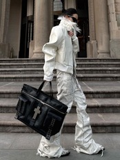 ワイドパンツやカーゴパンツ、デニムなどと合わせるだけで、洗練されたストリートモードコーデが完成します。