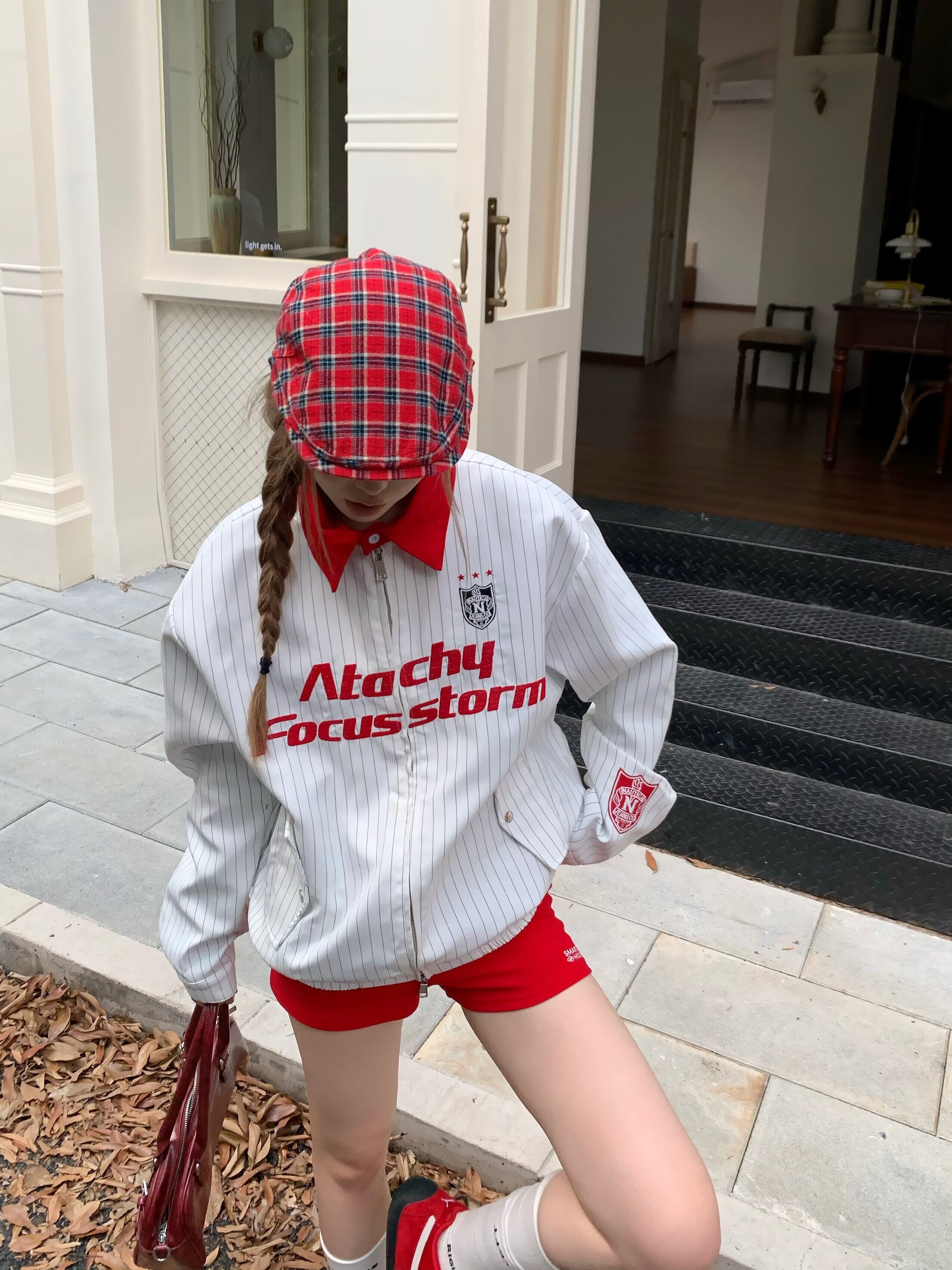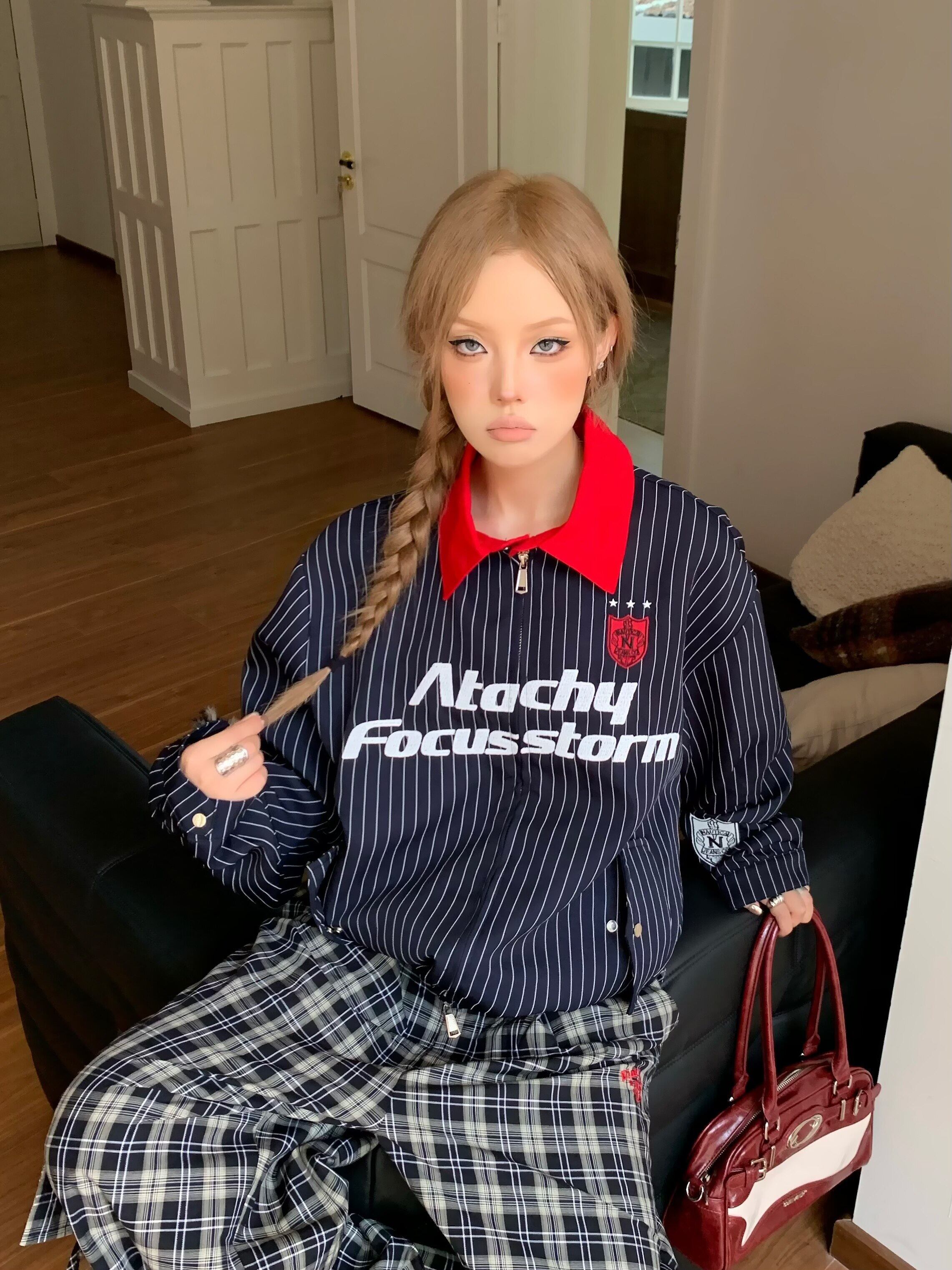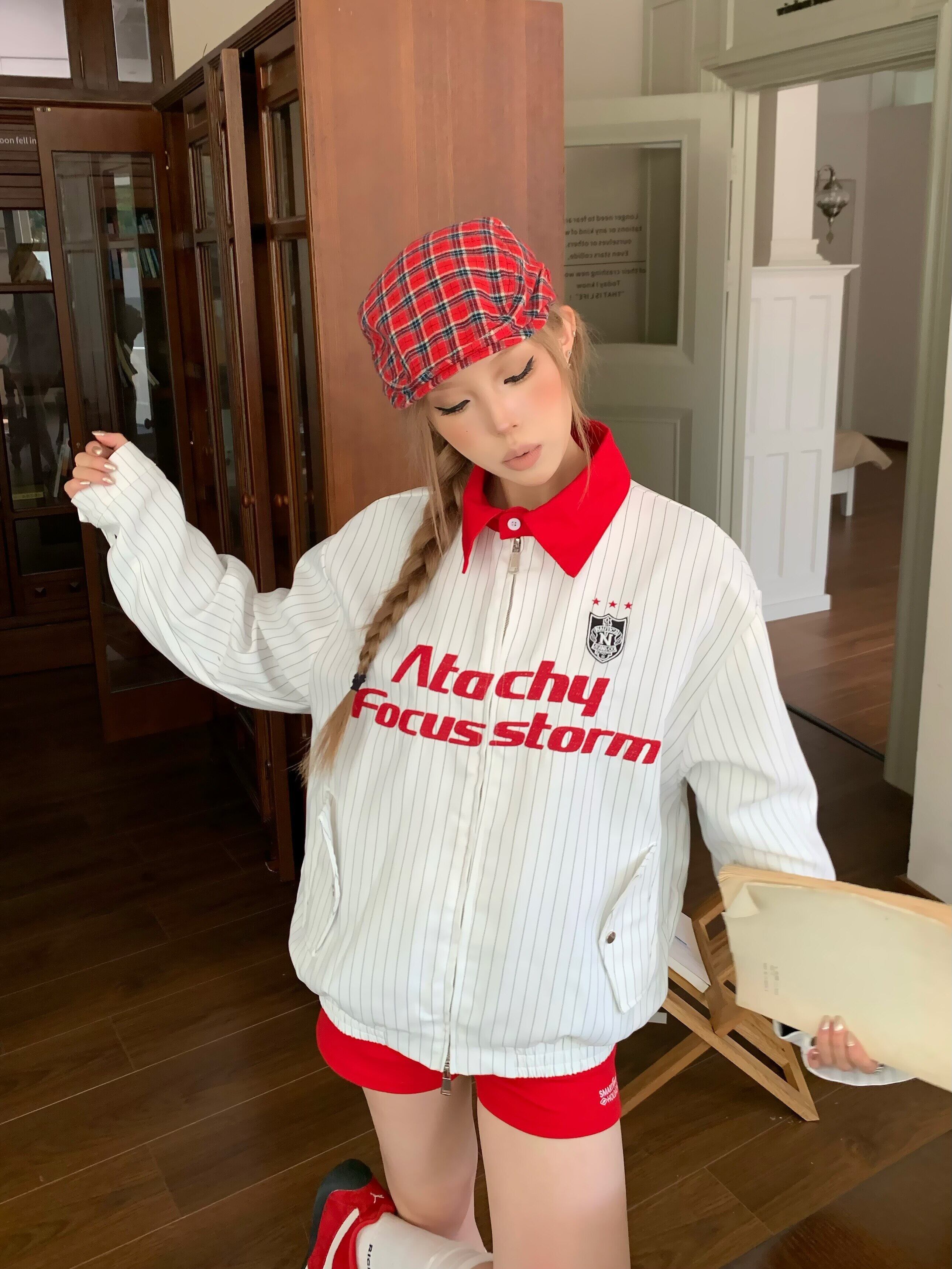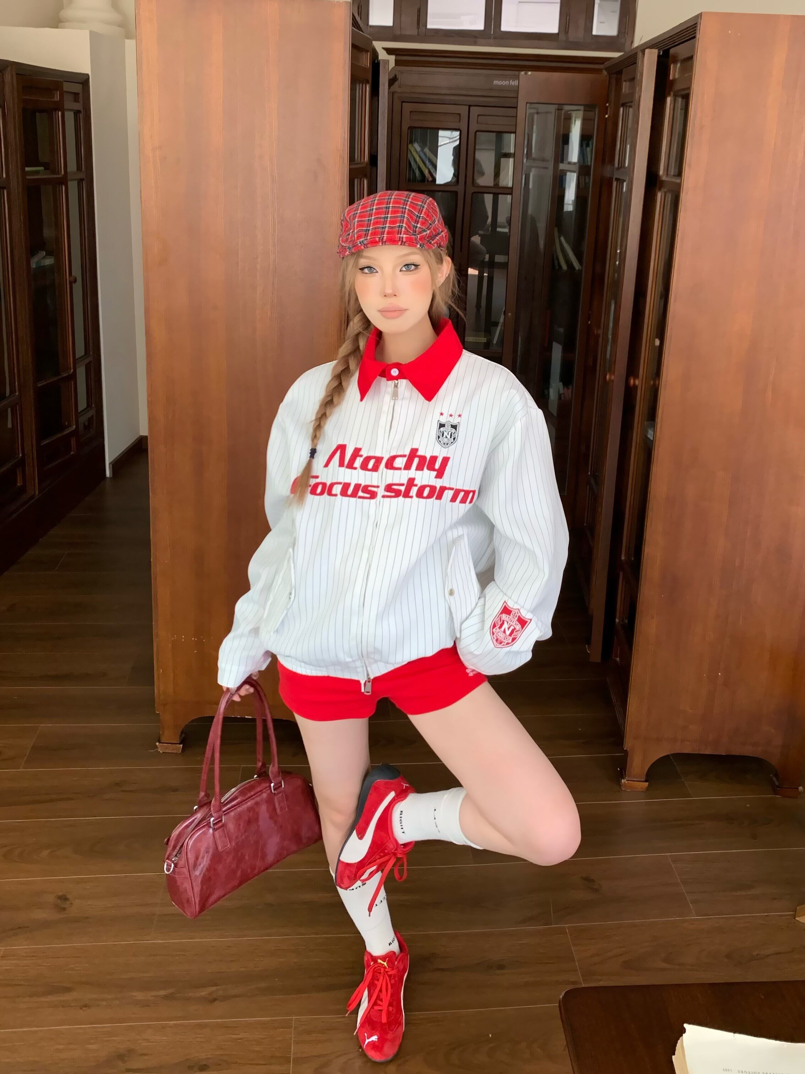 レディース ストライプ ジップアップ ブルゾン オーバーサイズ 海外ファッション スポーティー ジャケット 配色カラー 襟付き アウター カジュアル ゆったり 羽織り トレンド 韓国 ストリート 秋 冬 春 長袖 おしゃれ 体型カバー 大人可愛い C378