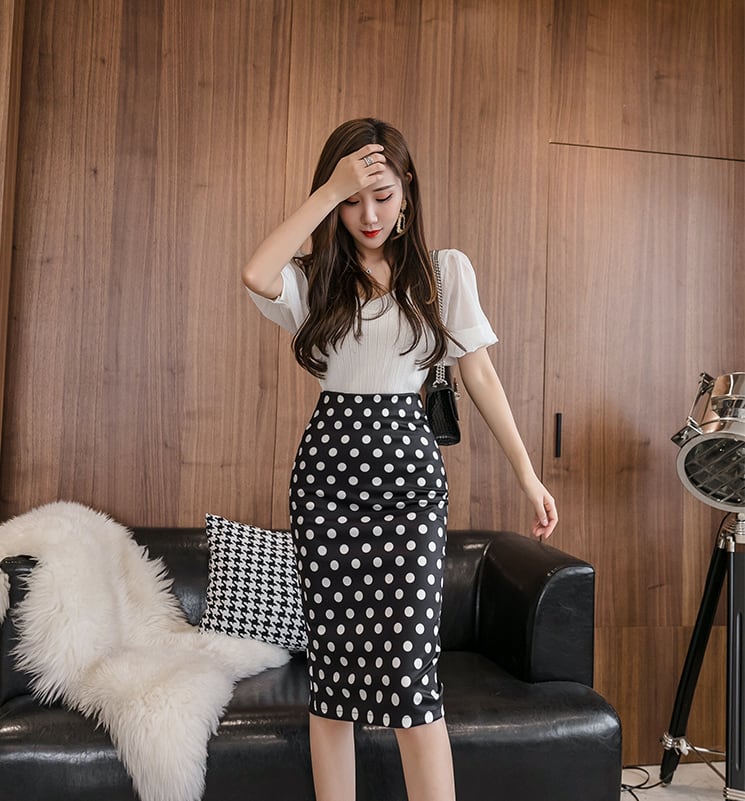 ドット柄スカート 水玉タイトスカート タイトスカート スカート レディース スリム 綺麗め オフィスコーデ ママコーデ 膝丈スカート2カラー b82