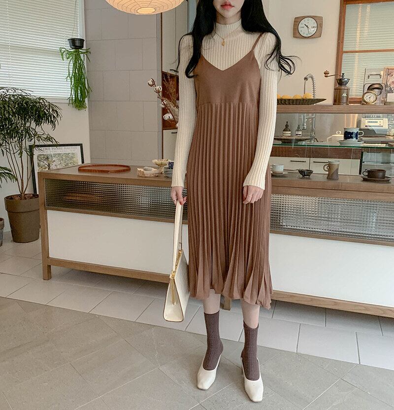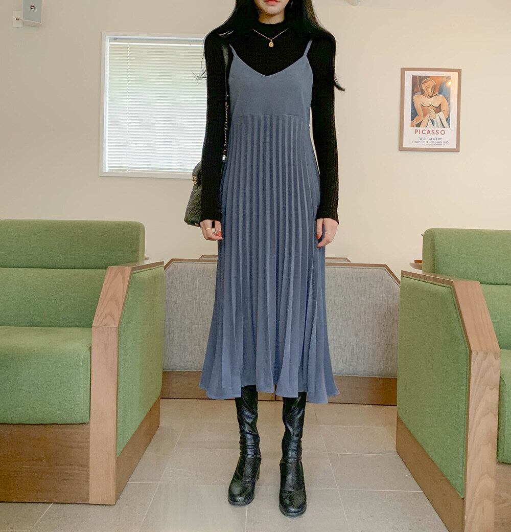 トレンドのサイドスリットのワンピースの下にインナーワンピースとして着用し、
