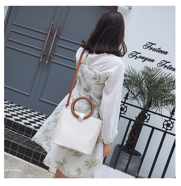 ウッドな持ち手が可愛い巾着付き✴︎バケットバッグです。