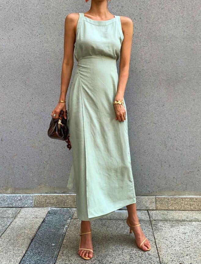 爽やかリネンのノースリーブワンピース
