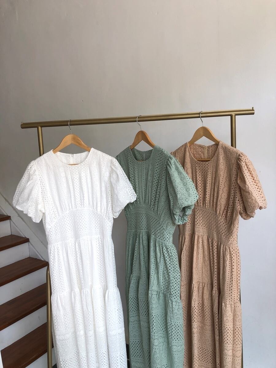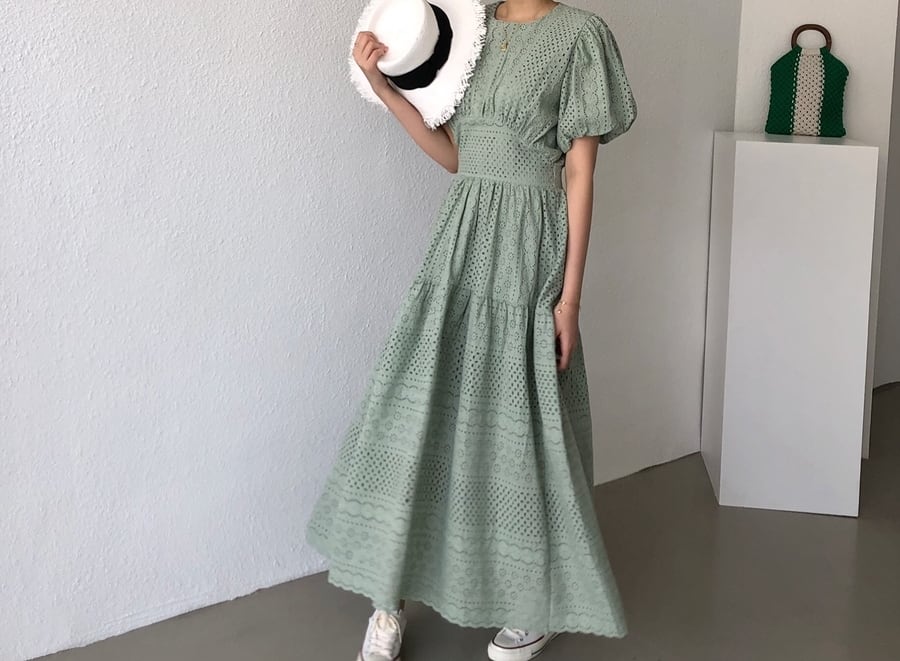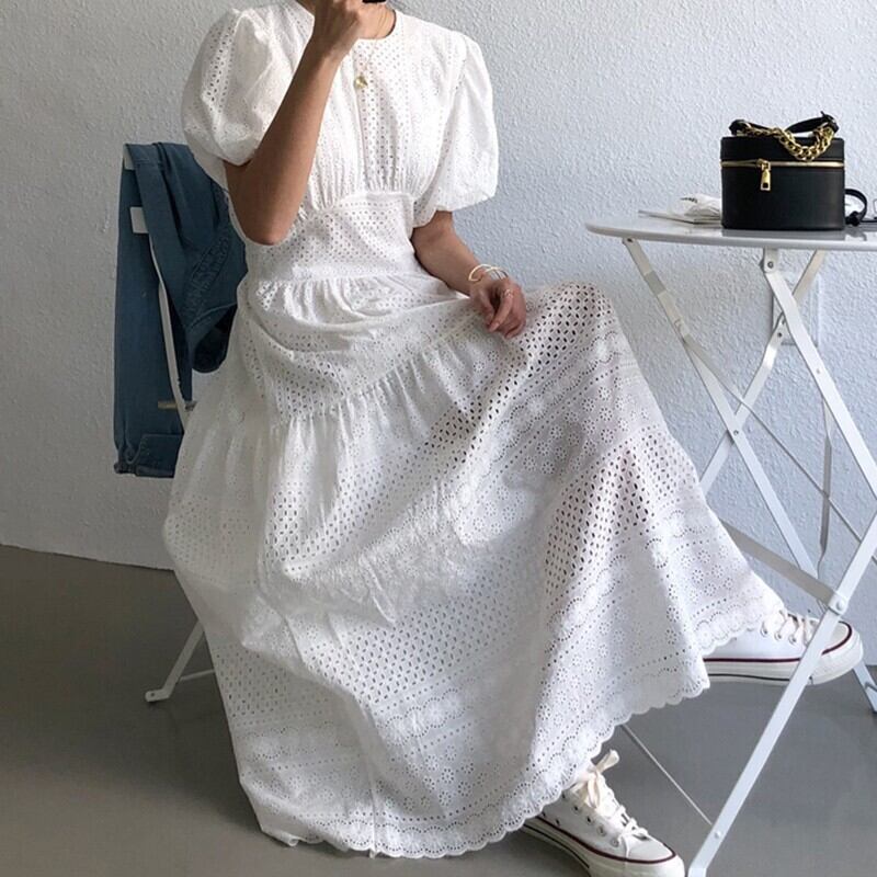 パンチングレースワンピース レースロングワンピース ワンピース フレアワンピース ロング ロング丈 マキシ マキシ丈 袖あり 半袖 パフスリーブ ラウンドネック フレア レース ハイウエスト 透け感 かわいい 大人可愛い きれいめ シンプル カジュアル 大人 上品 おしゃれ お洒落 大人可愛い 大人女子 こなれ感 ラフ ラブリー キュート ガーリー 20代 30代 レディース デート お出かけ 女子会 休日 着回し 普段使い 韓国系 オルチャン3カラー b315