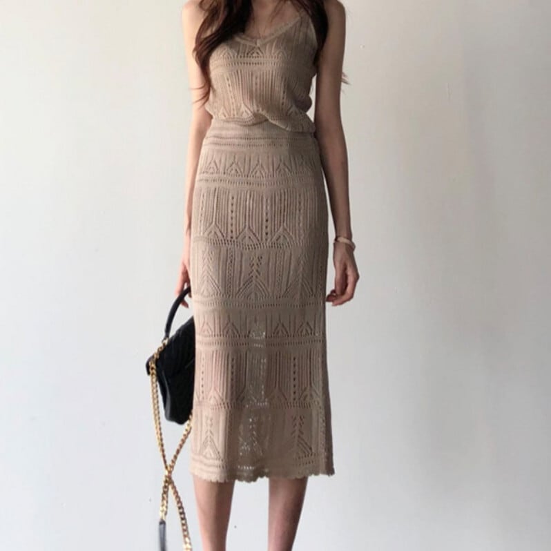 セットアップ ニット生地 トップス+スカート 2カラー b326