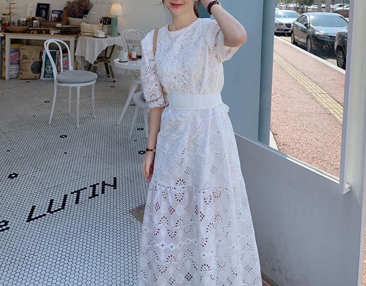 パンチングレースワンピース 2カラー b308