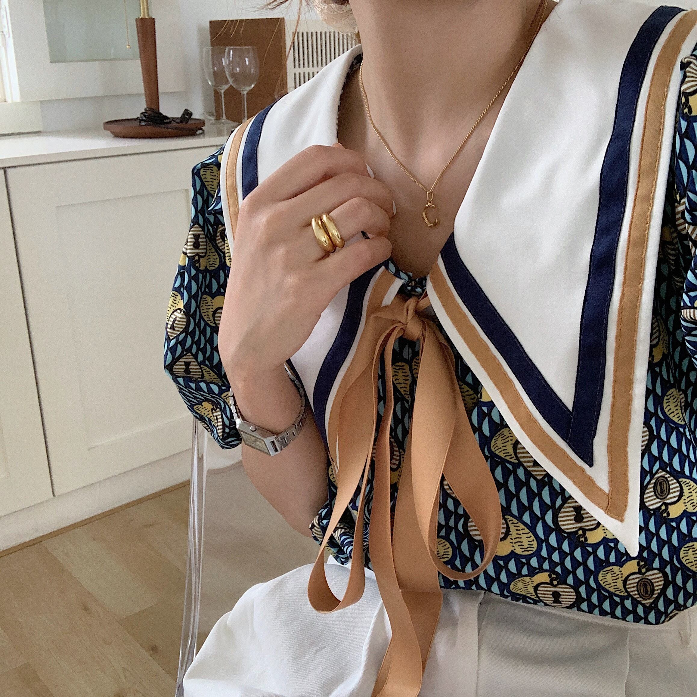 大ぶりな襟とリボンの組み合わせが可愛いパフスリーブリボンブラウス