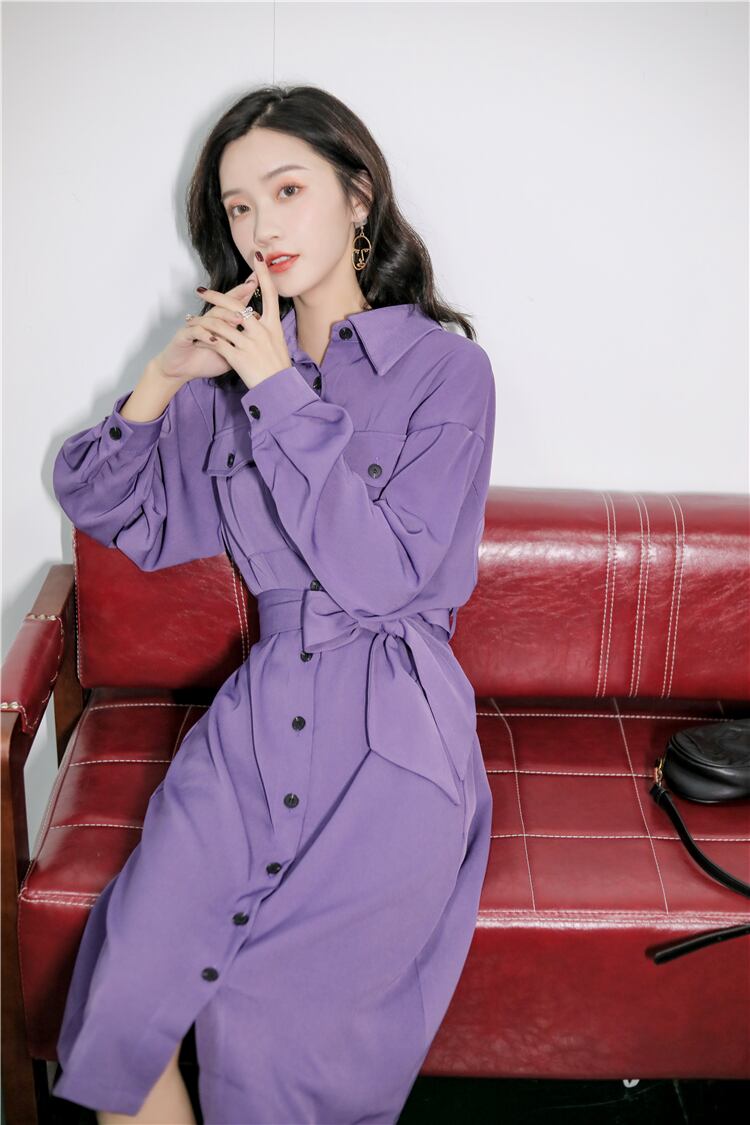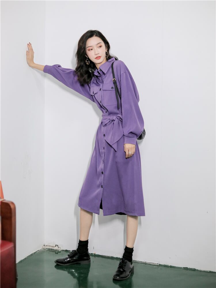 ミドル丈のボタンシャツワンピースです。