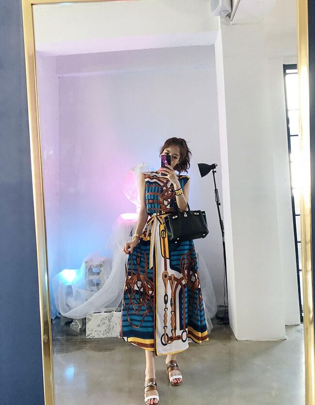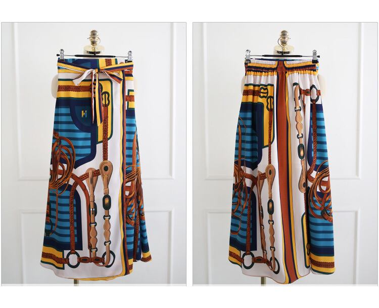 【セットアップ】スカーフ柄 プリントブラウス+スカート レディース ツーピース オフィス お仕事コーデ b366