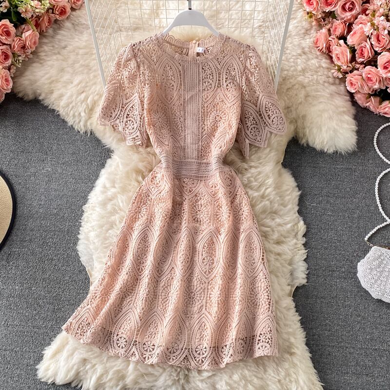 Aライン総レースドレス レースワンピース. ワンピース ドレス. 結婚式. 二次会. パーティー. デート お呼ばれコーデ b346