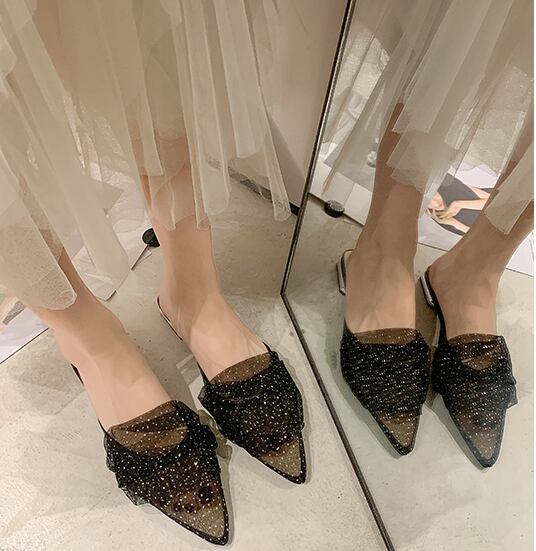 レースサンダル ミュール ローヒール 2カラー 2パターン b554