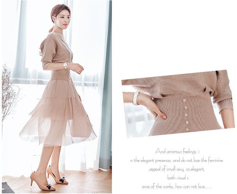 【セットアップ】ティアードスカート+パフスリーブセーター 2ピース 3カラー b465