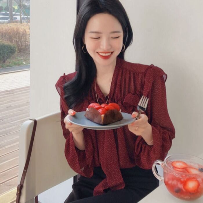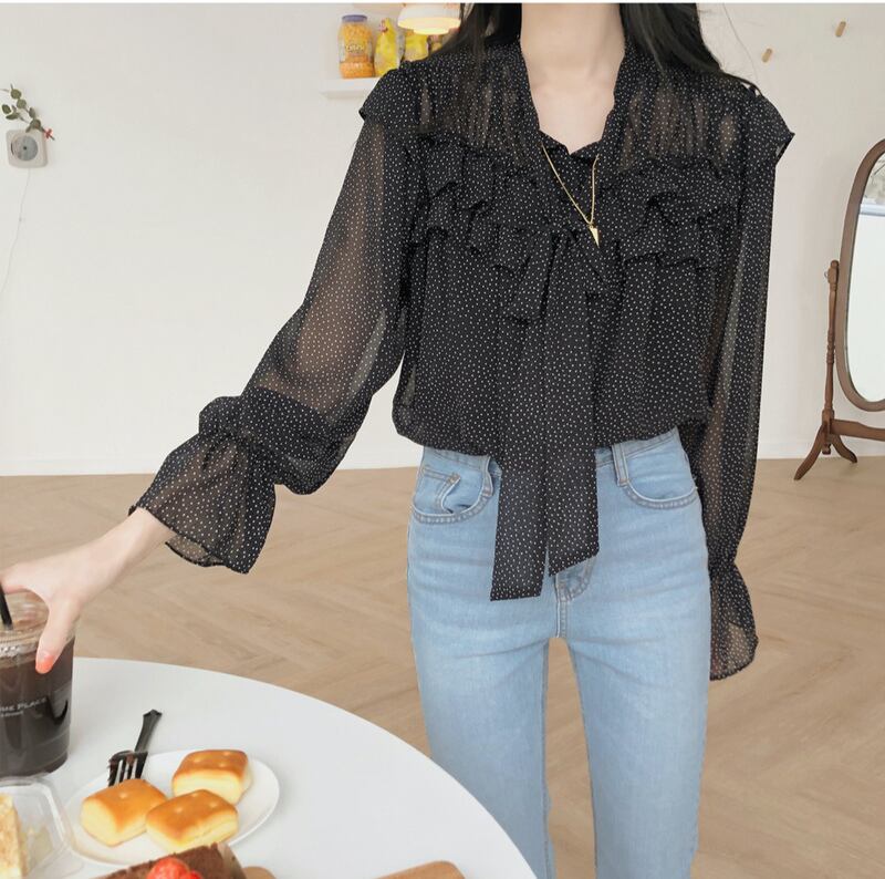 ドット柄✴︎シースルースリーブ シフォンブラウス 2カラー b474