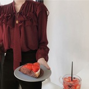 フリルとボウタイの組み合わせが可愛いシフォンブラウスです。