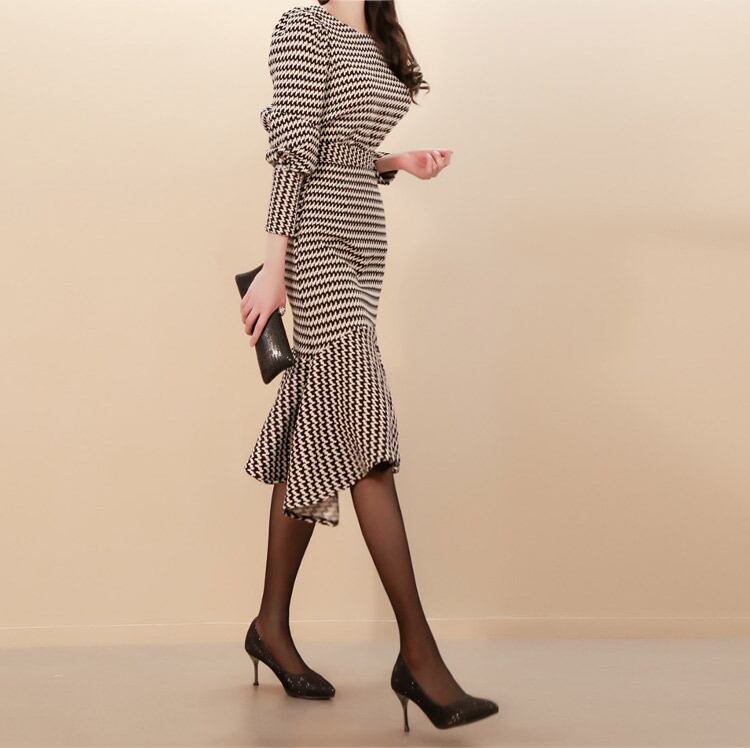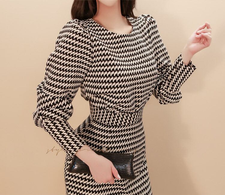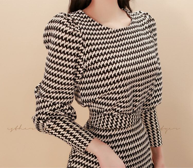 フェミニンなデザインの千鳥格子ニット2ピースドレスです。