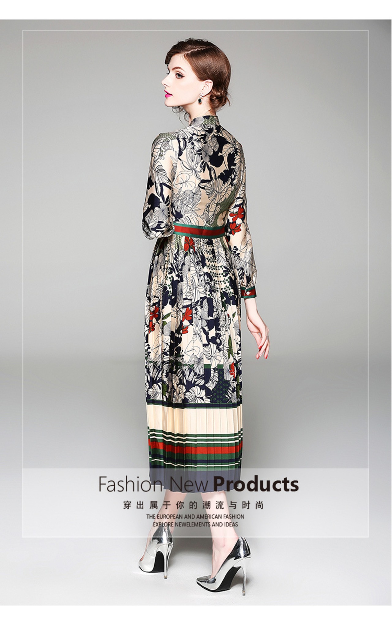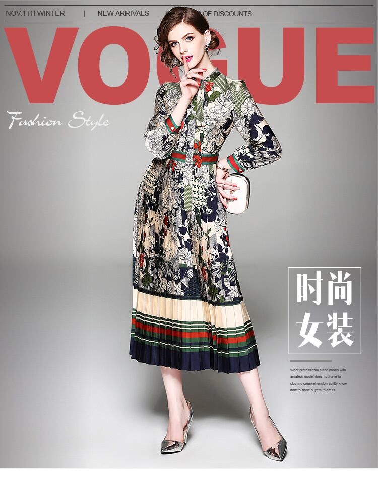 フラワー リボン Vネックワンピース プリーツスカート b426