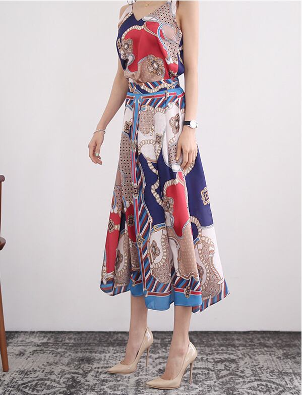 【セットアップ】スカーフ柄 Vネックノースリーブ ワンピース b413
