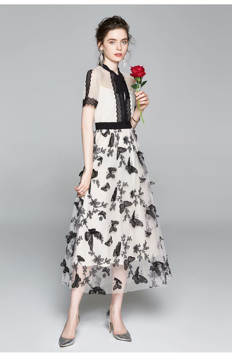Aライン バタフライ レースドレス ハイウエスト バイカラー b439