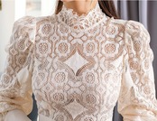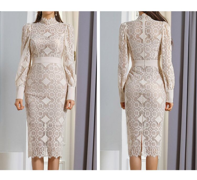 ハイネック レースドレス 長袖 パンチングレース ノースリーブ b447