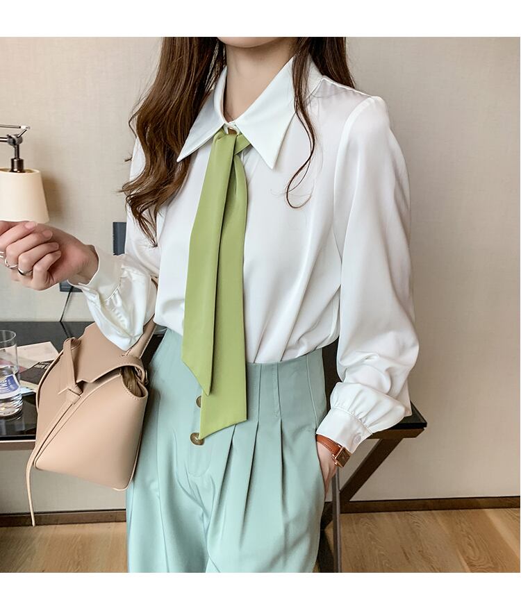 取り外し可能なボウタイ付きシフォン長袖シャツです。