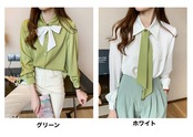 ボウタイ リボン シフォンドレープ バイカラー 長袖シャツ b519