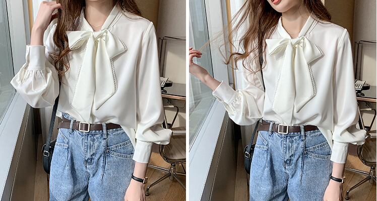 リボン ボウタイ リボンドレープ レディースシャツ b520