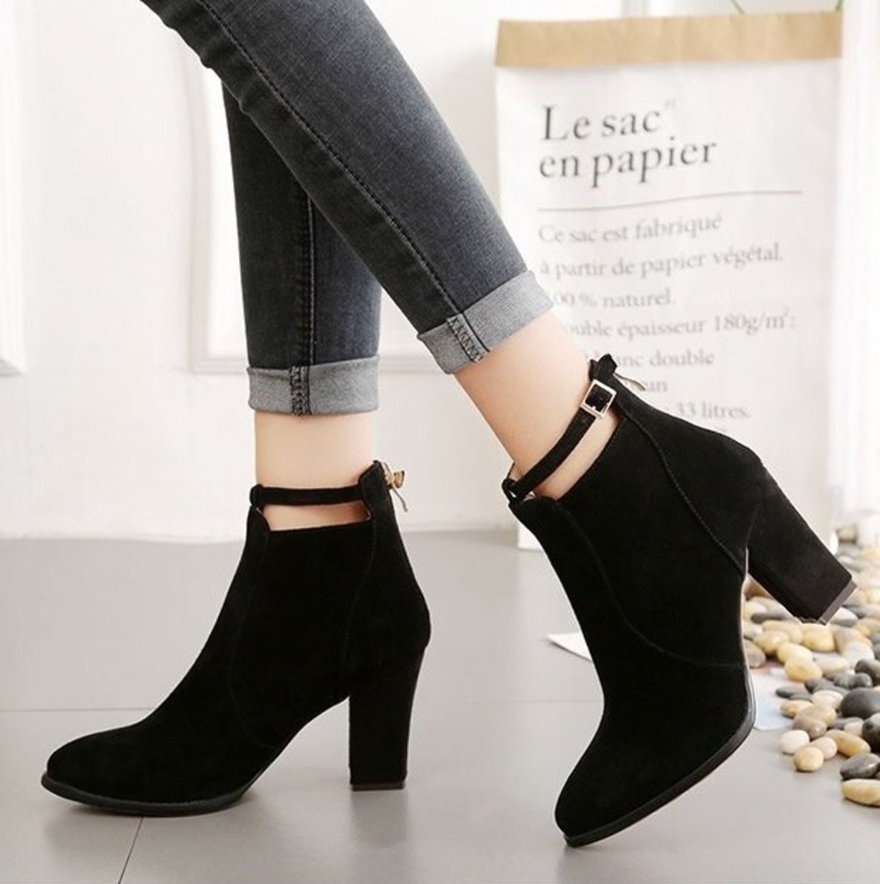 ショートブーツ ヒール ハイヒール チャンキーヒール ヌードブーツ 2カラー b591