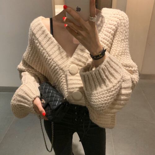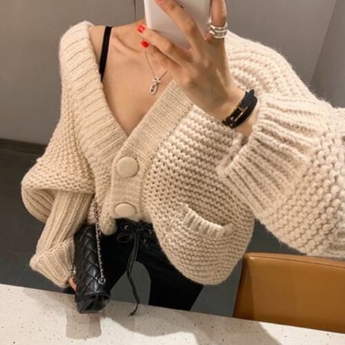 Vネック プルオーバー セーター カーディガン 長袖 A1762