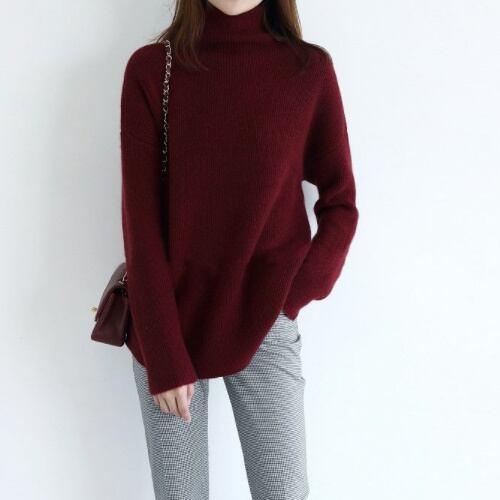 ニット セーター 長袖 レディース 暖かい シンプル 手触り滑らか タートルネック A1777