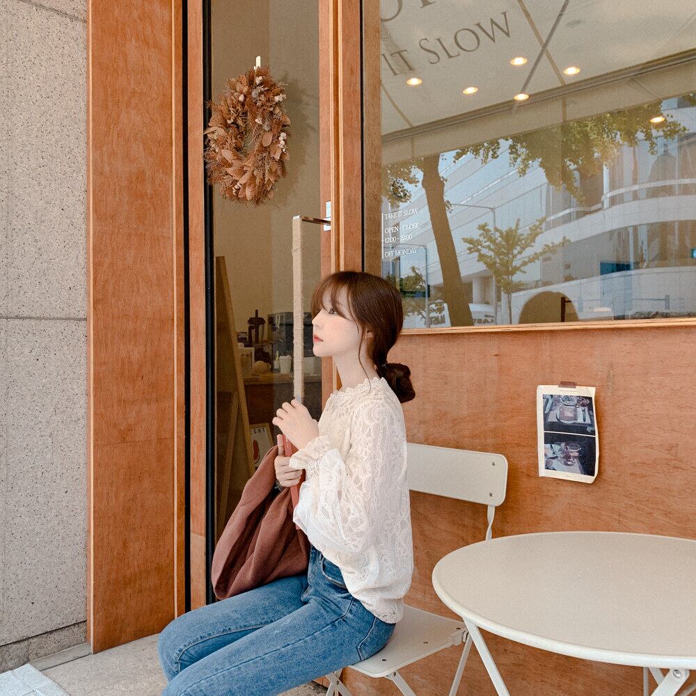バルーンスリーブがかわいいレースシャツは1枚でも着回しの可能性無限大!