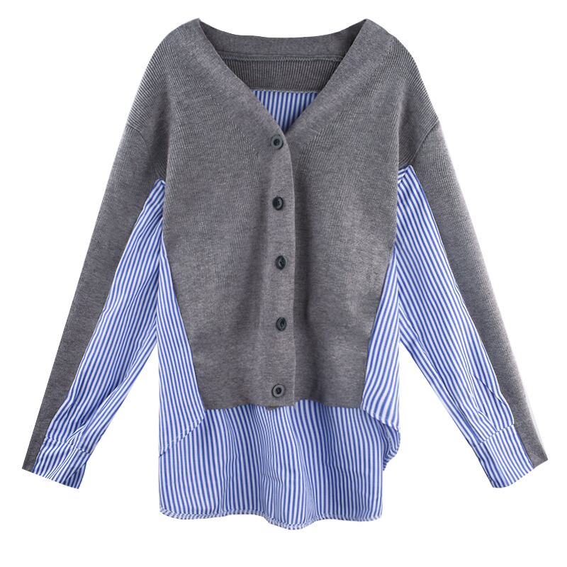 ニットカーディガン 新作 レディース ニット切り替え 異素材コンビ 素敵 Vネック ルーズ A16