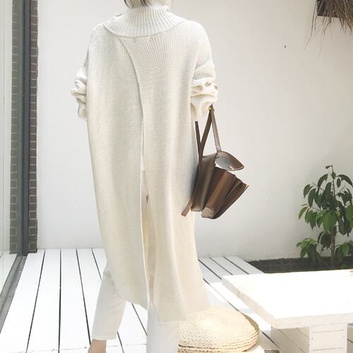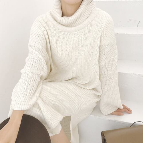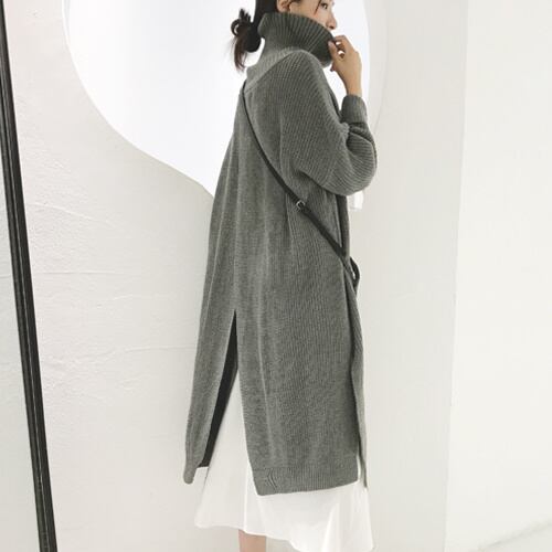 ハイネック スリット オリジナル 長袖 ニット セーター ワンピース A1789