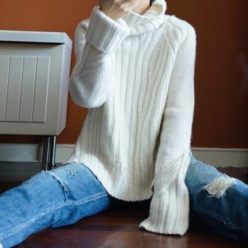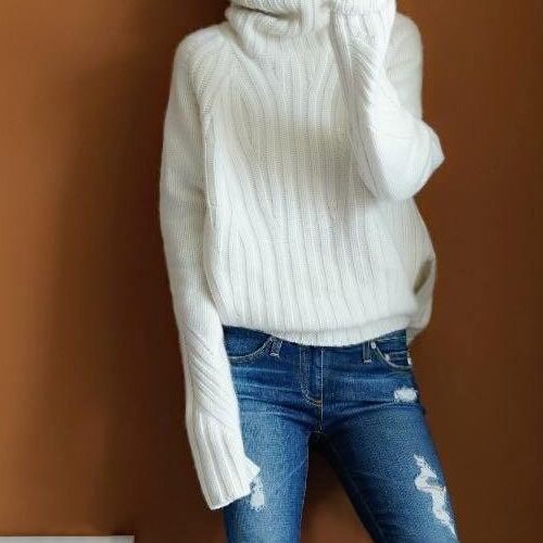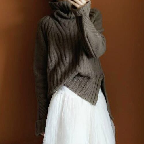 高級 ふわふわ暖かい タートルリブ編みニット ロングセーター A1813
