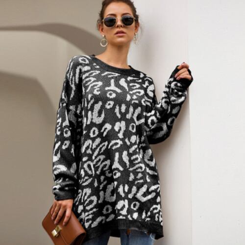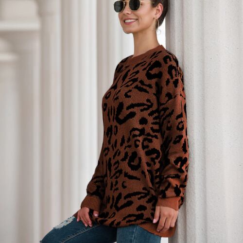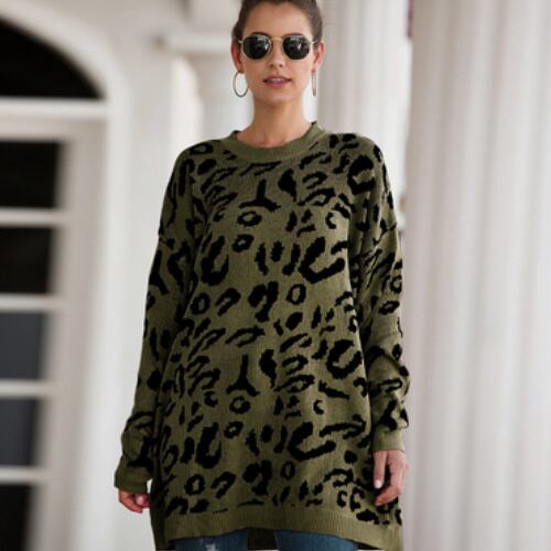 豹柄 着やせ ニット セーター 長袖 暖かい 大人 可愛いA1826