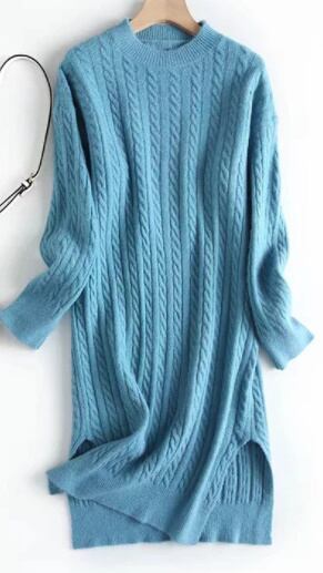 秋冬 レディース 暖かい ハイネック 着やせ ケーブル編み スリット 長袖