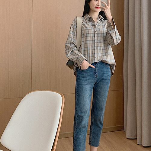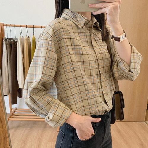 秋カラーのシックなチェック柄シャツのご紹介です。