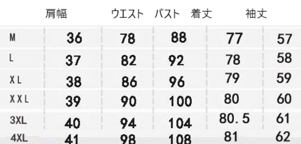 【サイズ】画像参照 M、L、XL、2XL、3XL、4XL