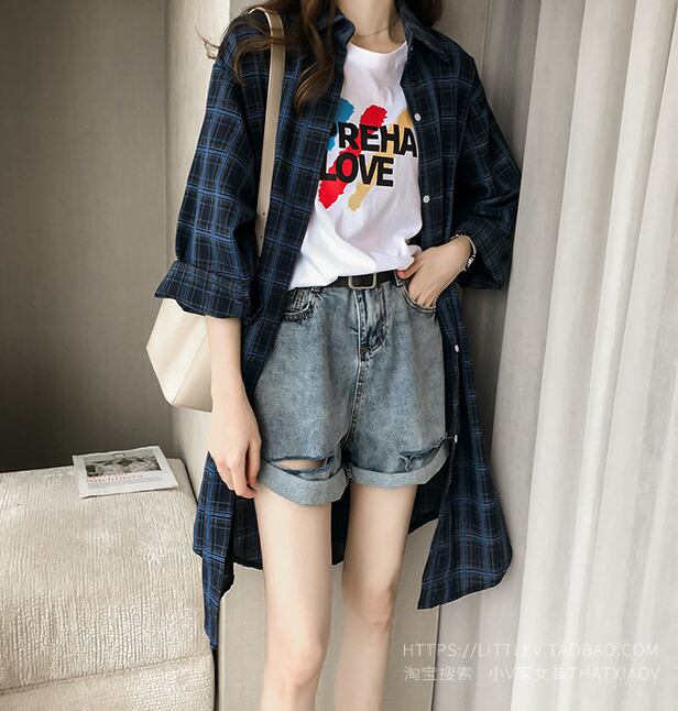 大ぶりチェック柄が可愛いロング丈シャツです。