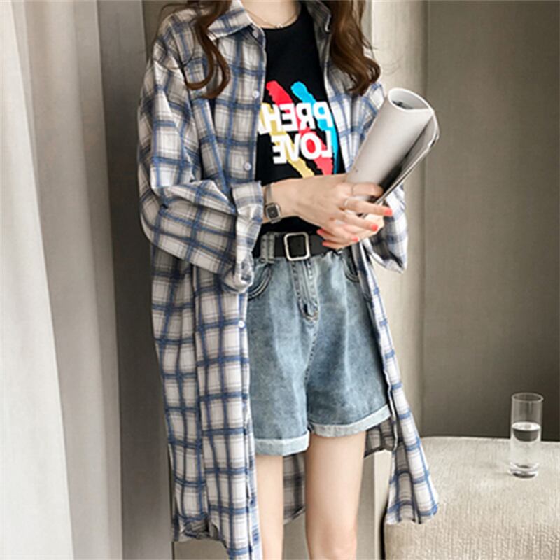チェック柄 ロングシャツ オシャレ シャツ 薄 カーディガン 4カラー a45