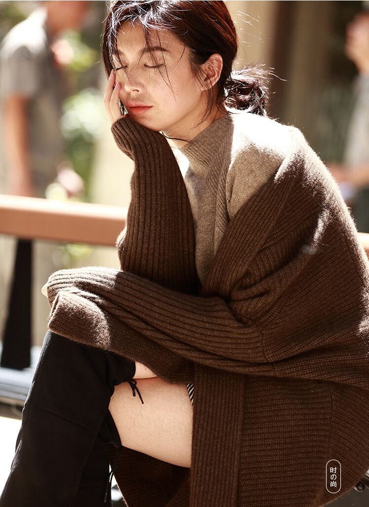 セーター コート ミドル丈 ウール カーディガン厚い韓国 ルーズ 2カラー a171